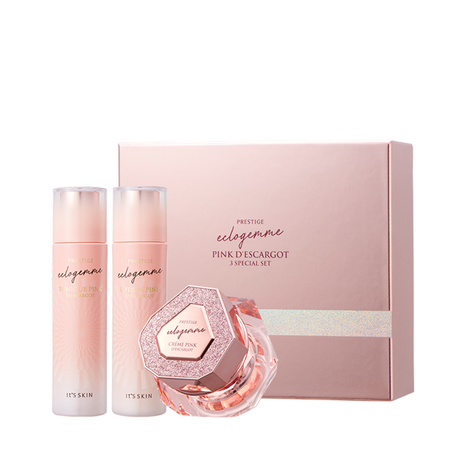 Средства для лица с муцином улитки и розой интенсивно увлажняют, питают и омолаживают кожу, насыщает ее витаминами, тонизируют и разглаживают. Муцин улитки борется с пигментацией и возрастными изменениями, запускает регенерацию кожи и выравнивает морщинки. Крем восстанавливает нормальный pH-баланс кожи. Алмазный, жемчужный, аметистовый и коралловый порошки придают коже сияние, осветляют пигментацию и улучшают цвет лица. Экстракт дамасской розы интенсивно увлажняет и повышает упругость.