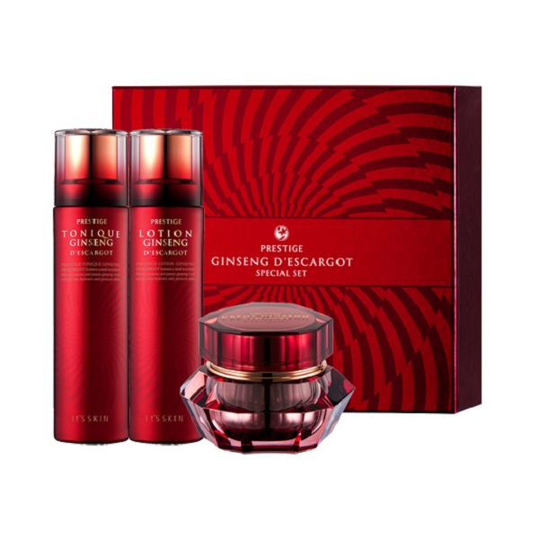 Средства из набора для лица интенсивно борются с морщинками, темными кругами и отечностью. Муцин улитки обладает регенерирующими свойствами, восстанавливает, омолаживает и выравнивает рельеф кожи, глубоко увлажняет, восстанавливает водный баланс. Экстракт женьшеня содержит ударную дозу активных веществ - сапонины, витамин С, витамины группы В, холин, пектиновые и смолистые вещества, соли фосфора и др. Он стимулирует процессы деления клеток, положительно влияет на синтез коллагена, питает, витаминизирует, тонизирует и увлажняет. Еще один мощный антивозрастной компонент - аденозин, он стимулирует выработку коллагена и эластина в клетках кожи, уменьшает глубину морщин, замедляет процесс старения, снимает раздражения и воспаления. Ниацинамид борется с пигментацией, выравнивает тон кожи, улучшает эластичность, повышает иммунитет.